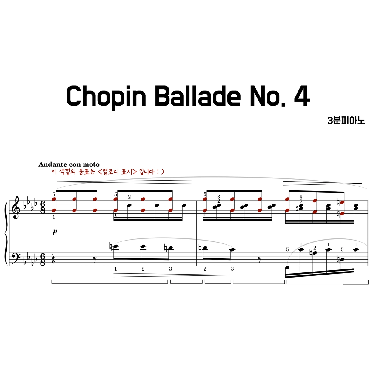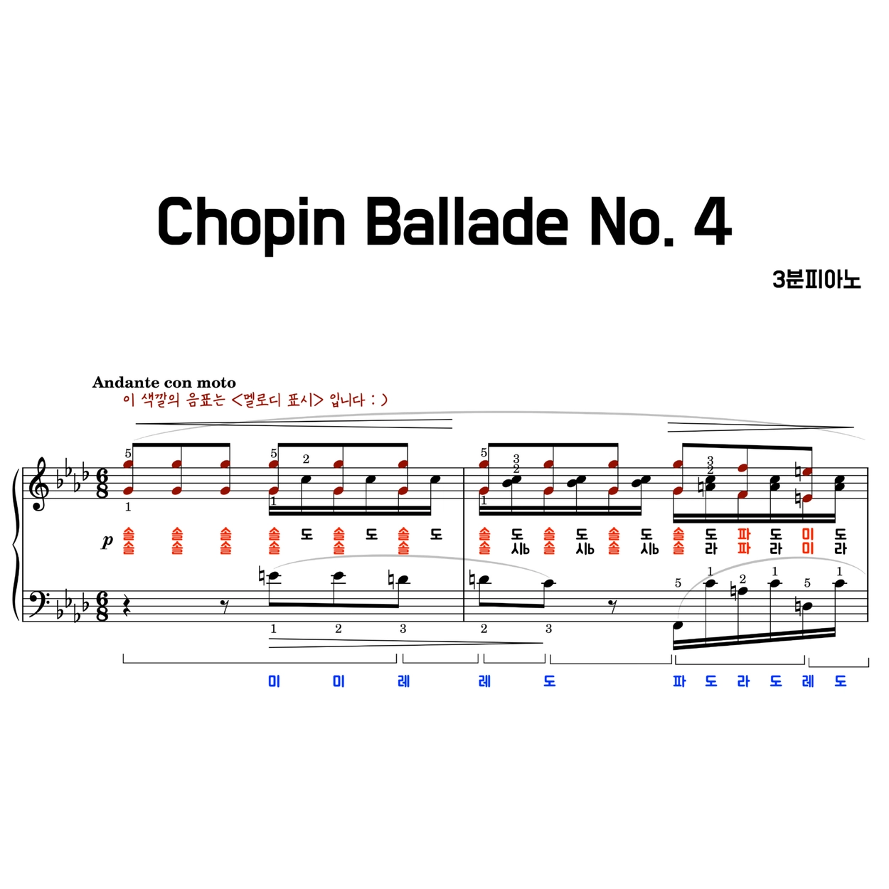 쇼팽 발라드 4번 악보 (1~37마디) (계이름 악보) pdf 다운 | Chopin ballade no.4 Measures 1–37 |