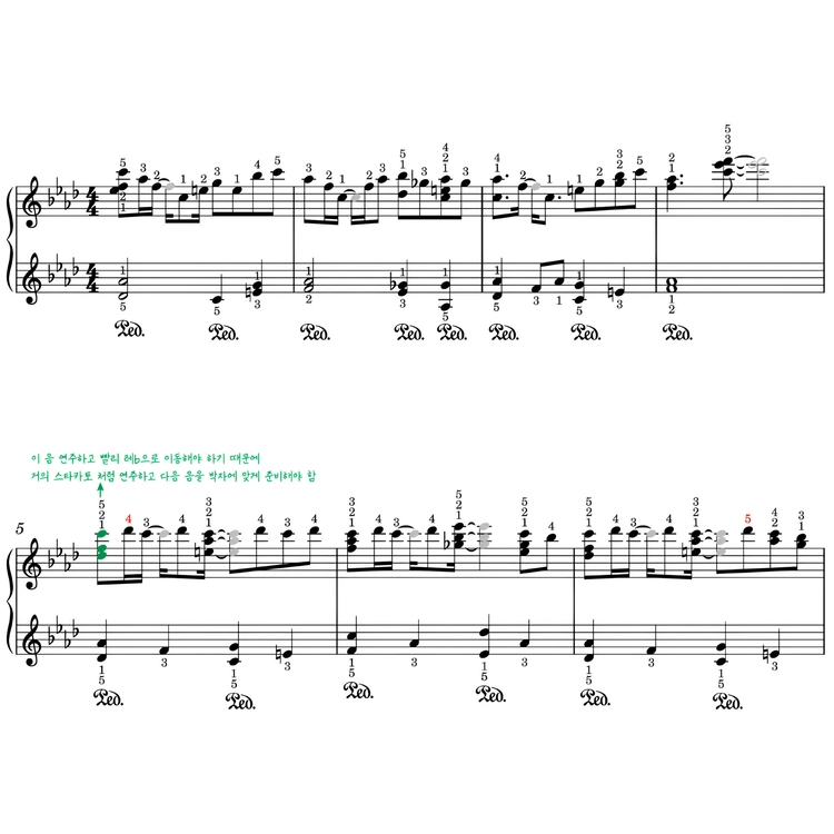- 손번호, 페달, 셈여림이 모두 적혀있습니다.