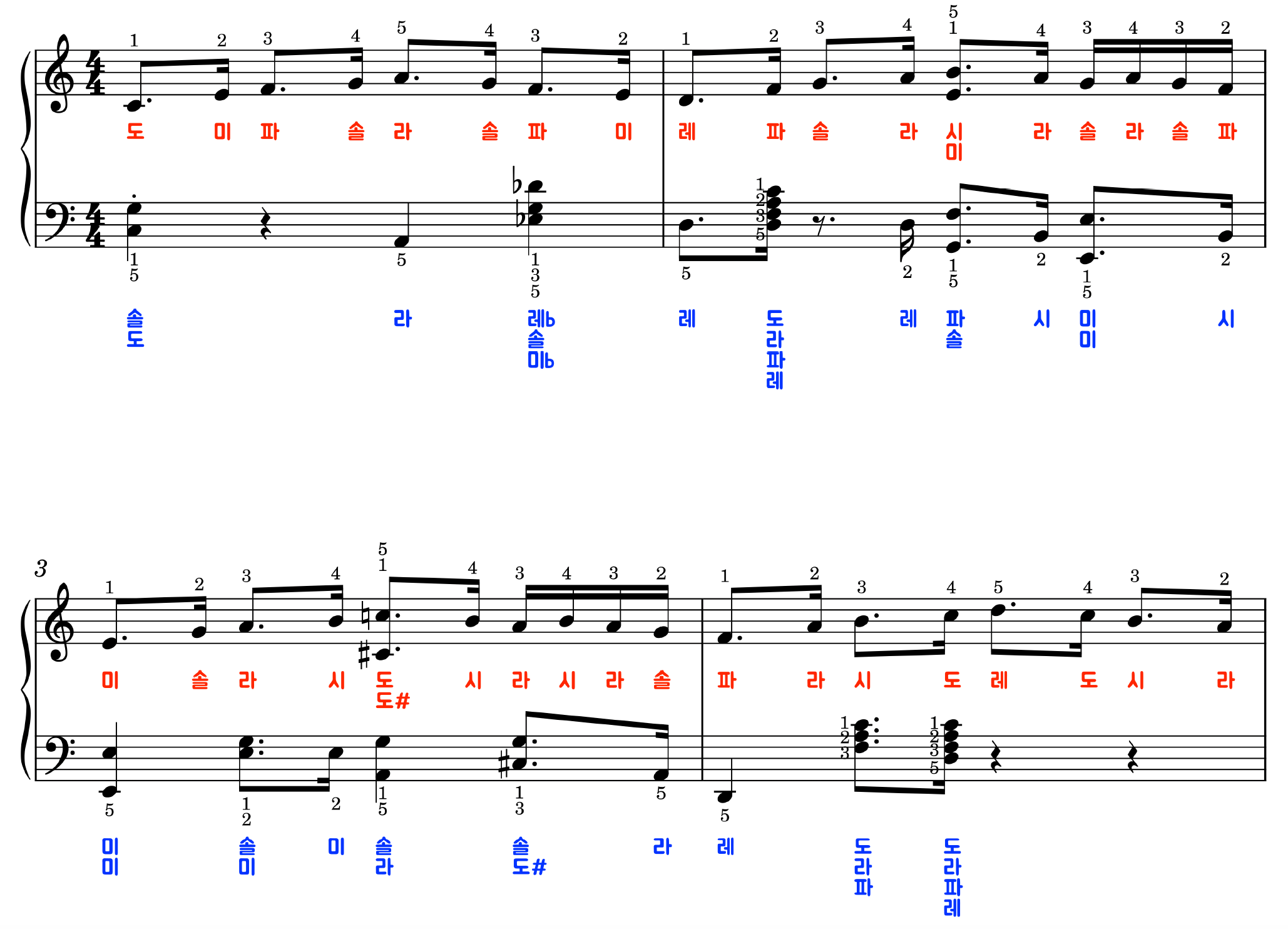 계이름, 손번호가 악보에 추가되어 있습니다 !