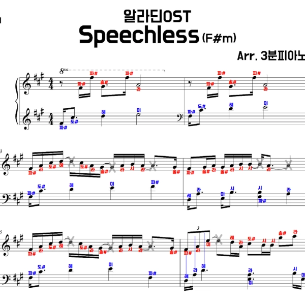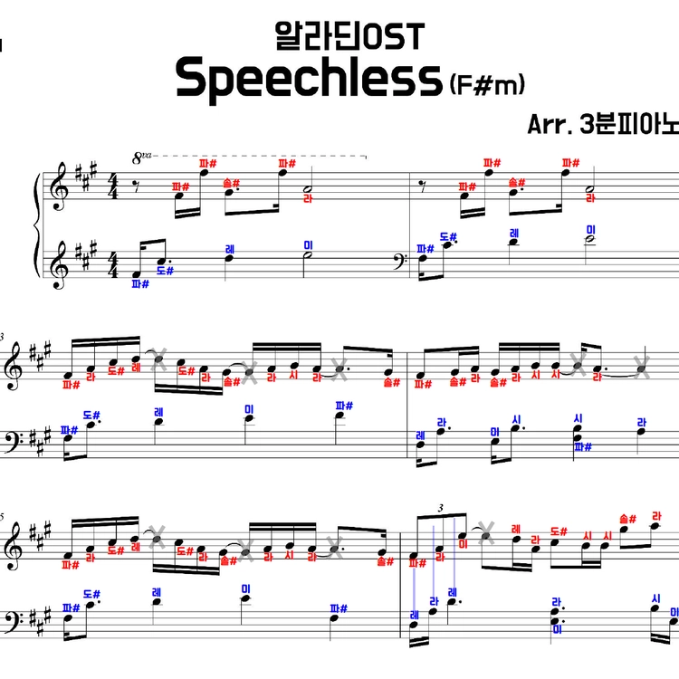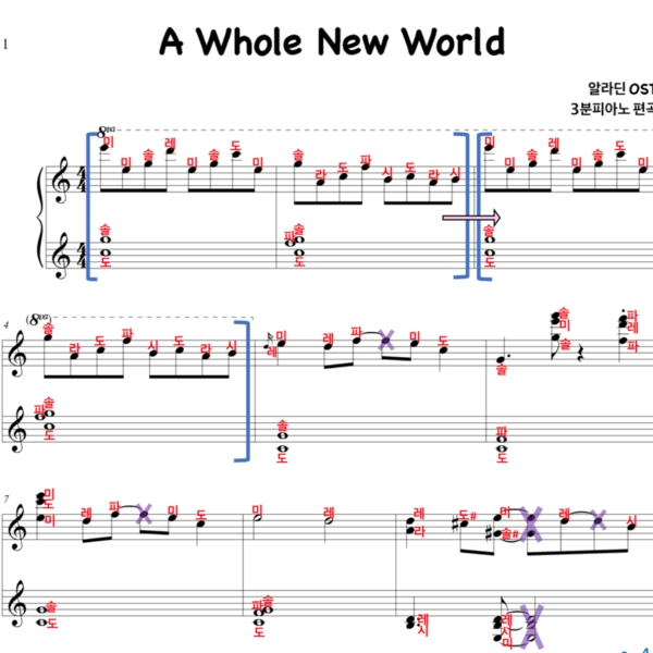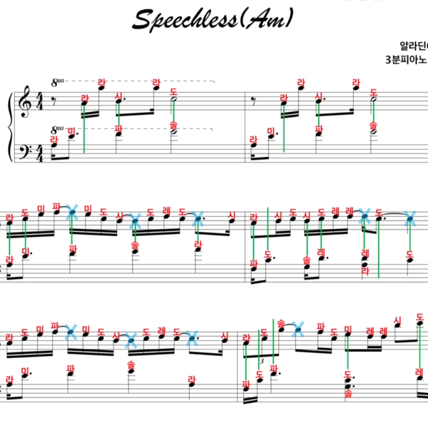 - 악보는 영상과 같습니다. (일반악보는 계이름이 적혀있지 않습니다)