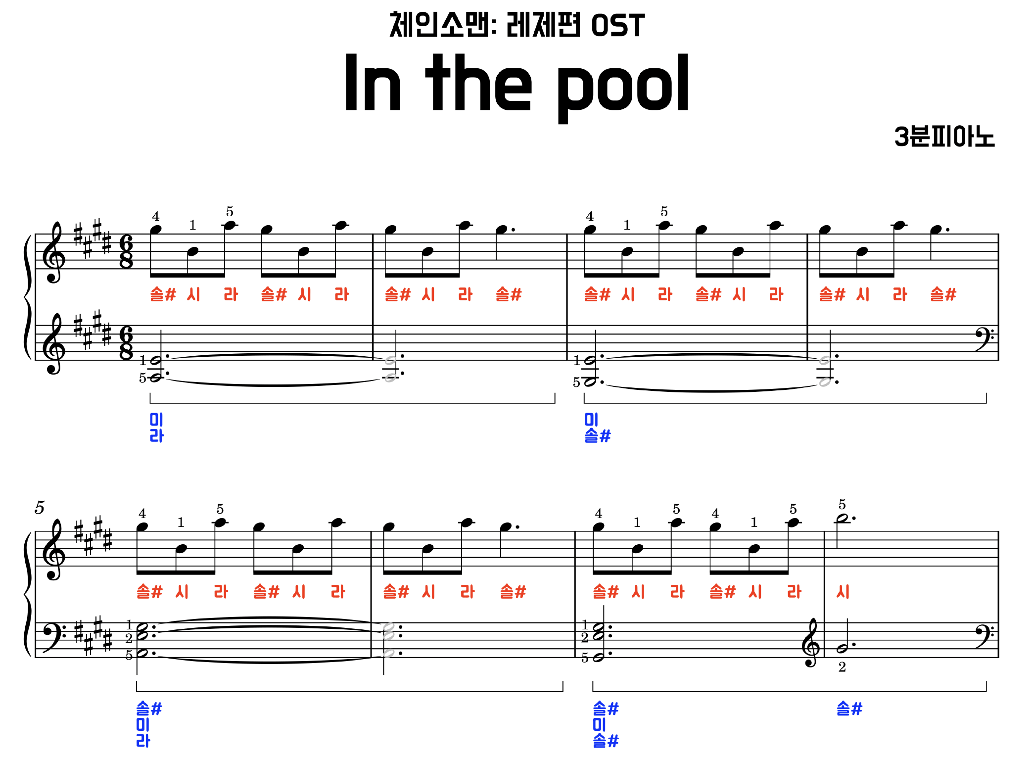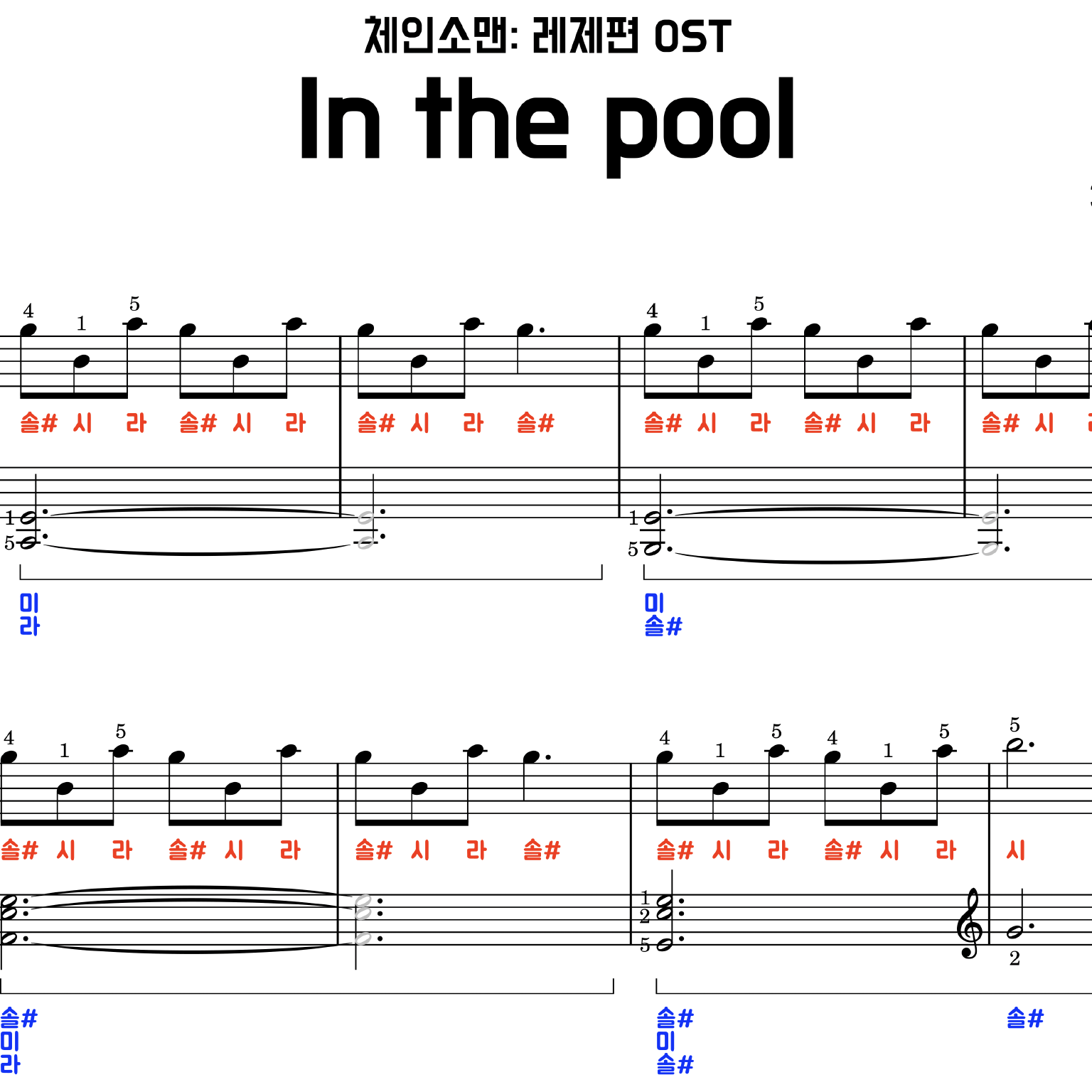 in the pool 악보입니다. (피아노 계이름 악보)