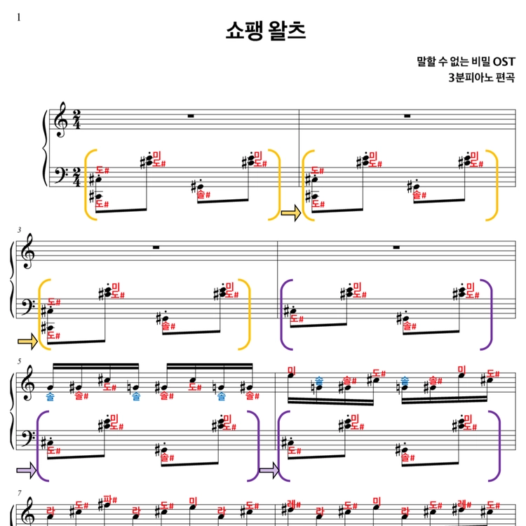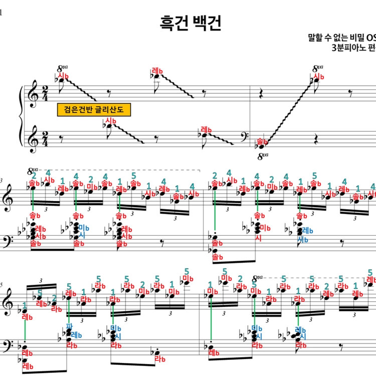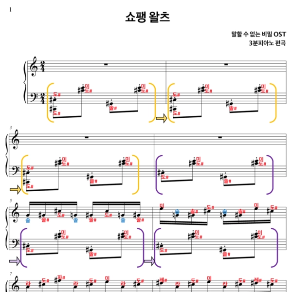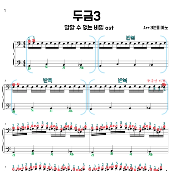 3.음이 반복되는 부분을 헷깔리지 않고 잘 연주할 수있도록 악보에 표시하였습니다 .