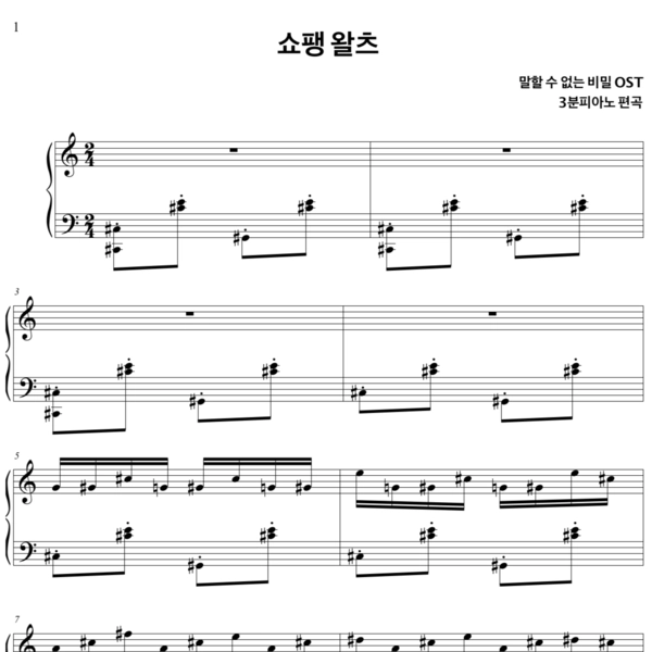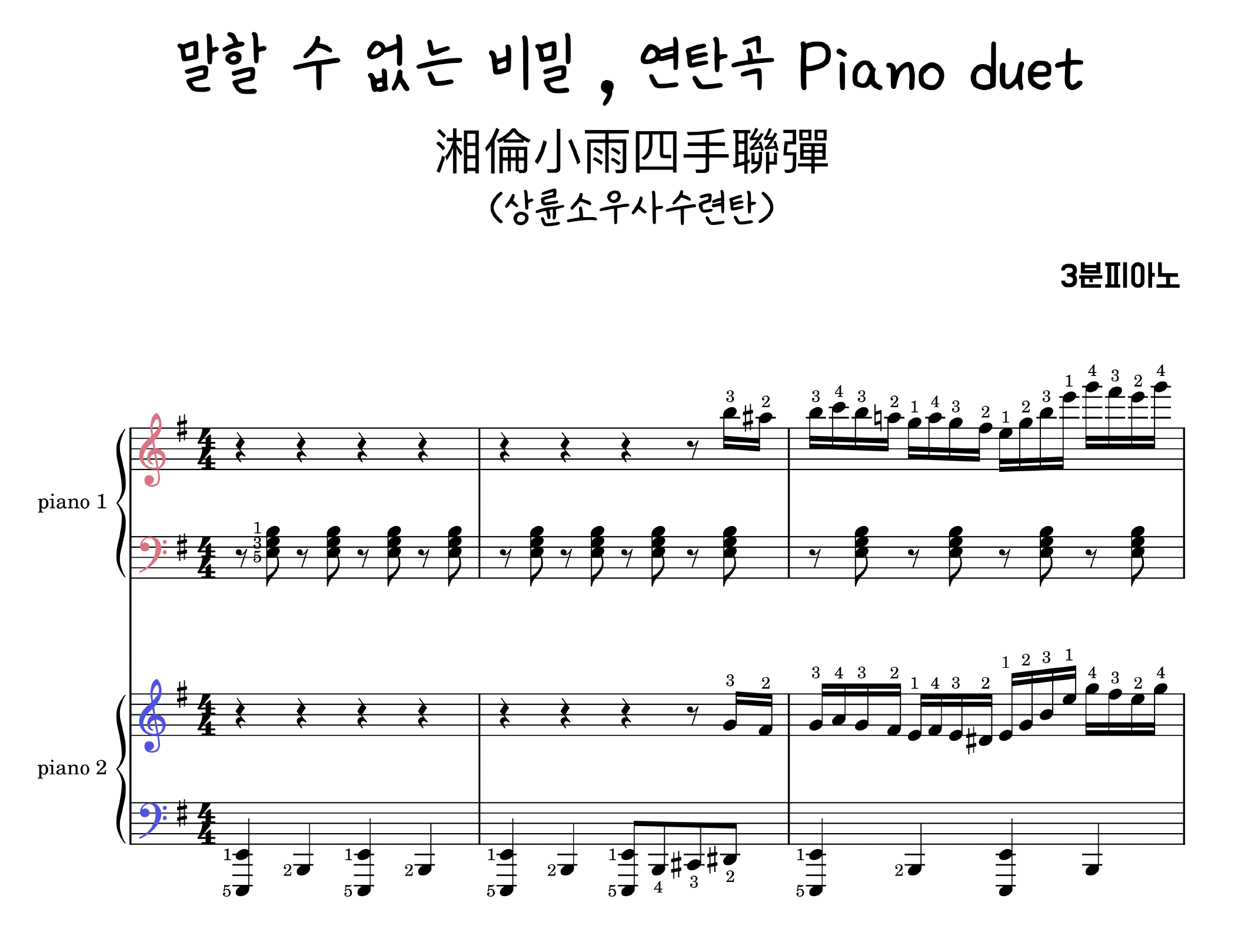 상륜소우사수련탄 악보 (일반 악보) - 말할 수 없는 비밀 연탄곡 (말할수없는비밀 연탄곡)