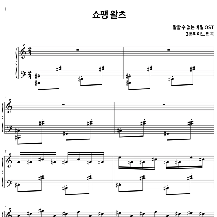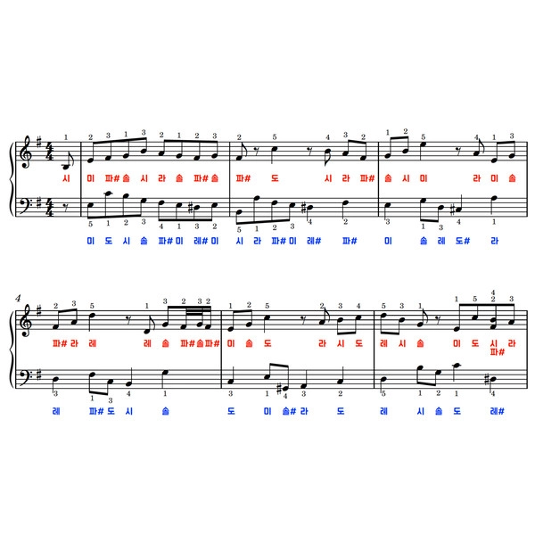 원곡 악보이며, 악보 보기 쉽게 배치하여